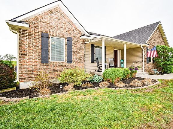 Welcome to this custom-built home nestled on 18 acres situated right on a quiet blacktop road. This property offers a peaceful escape with an abundant pond, perfect for fishing, stocked with bass, catfish, and bluegill along with a panoramic view of the country side. The home boasts custom cabinetry, built-in double ovens, and convection appliances in the kitchen, plug-ins above the kitchen cabinets. Vaulted ceiling in the extra large family room that is open to the country kitchen. This is country chic done to perfection. The custom accent shelving/ledge located on the south wall has plug-ins. Primary suite has coffered ceiling with recessed lighting, a pocket door leads into the walk-in closet. Enjoy the convenience of custom closet systems in all the bedrooms. The outdoor space is a nature lover's paradise with apple trees, a peach tree, a small strawberry patch, and thornless blackberry bushes. Relax and entertain on the patio, outdoor speakers & wood swing-set will be staying. The small shed is included. The property is pet-friendly with several acres wired for an underground, invisible pet fence. Safety and convenience are paramount with a safe door leading to a safe room located in the basement, 9-foot basement walls with engineered floors are another feature in this amazing home. The trophy buck that is in the basement was harvested from the back yard. The home features a full working hair station with a hydraulic chair and central vacuum with a toe kick in the kitchen. Don't miss the opportunity to own this unique property that offers both luxury and functionality in a peaceful setting.