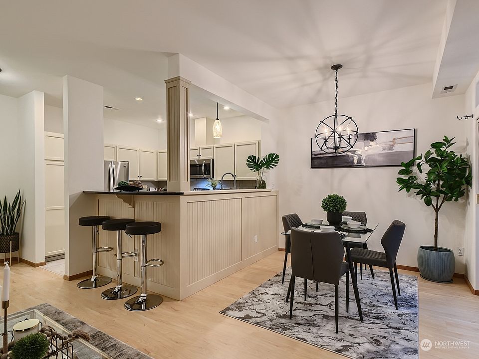 This delightful two bedroom/2.5 bathroom townhouse features new paint throughout and a wonderfully updated open kitchen with stainless appliances and subway tile. Welcoming front garden area and private back patio will please those with a green thumb. The attached one-car garage offers ample storage. Spacious upstairs landing makes for a perfect den/office or TV room. Easy bus access makes getting to charming Downtown Edmonds or Seattle for work or play a snap! Seller procured inspection report available. SubZero luxury refrigerator in garage included with sale of this home!