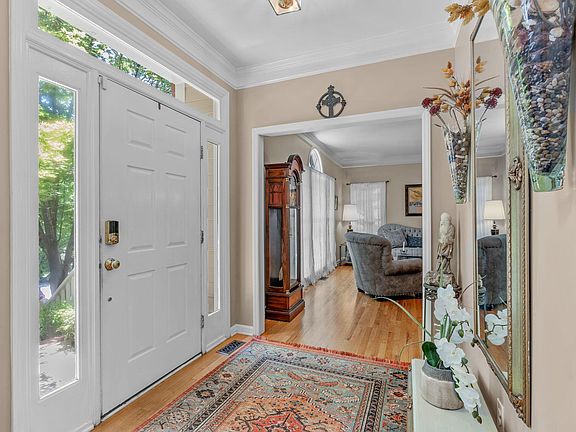 A park-like setting welcomes you to this charming home with beautiful landscape and welcoming front entry. This home provides two formal rooms with elegant crown molding and hardwood floors that merge together forming the ultimate hosting layout. A 2019 remodeled chef inspired kitchen offers an abundance of timelessly designed cabinetry, Granite countertops, Stainless Steel appliances, double wall ovens, center island with a built-in gas cooktop, breakfast nook, and a beverage station showcasing a wine rack and mini fridge. A spacious family room boasts a gas log fireplace providing the perfect nostalgic feel along with a plethora of windows bringing in loads of natural light. The second level hosts a primary suite enhanced with cathedral ceiling, walk-in closet, and a spa-like bath with walk-in shower, dual vanity sinks, separate soaking tub, and a private enclosed commode. Three additional bedrooms share a full bathroom with dual vanity sinks and a tub/shower combo. An open loft provides space for a home office, gym, bonus rec area, playroom and more, plus a large unfinished walk-up attic for future expansion! Enjoy the Carolina weather in your privately fenced backyard with mature trees and an extended back deck with stairs leading to the custom back patio and professionally upgraded hardscaping throughout. Close to 540 for fast and easy commutes to Downtown Raleigh and Durham, less than15 minutes to RDU, RTP, and Brier Creek Commons for shopping and dining!