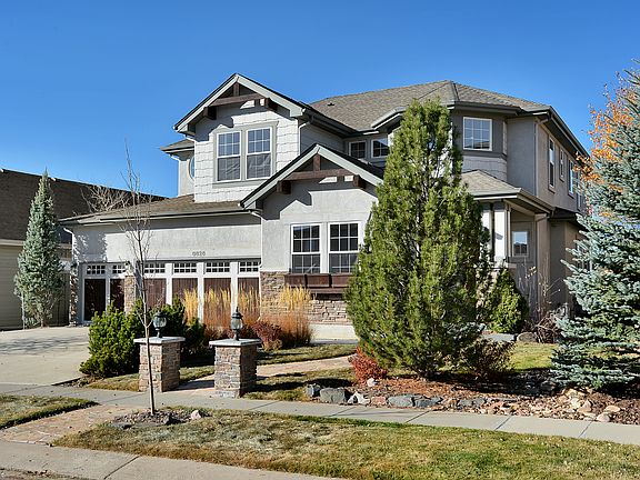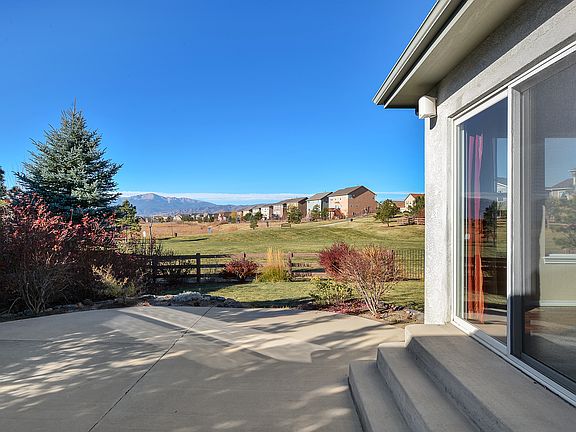 Pristine custom built home backs to open neighborhood park in Wolf Ranch with unobstructed panoramic views of the front range! This sun-drenched home features vaulted ceilings, immaculate hardwood floors and many custom features. Sunny entry way opens to office with glass french doors, gourmet kitchen with new granite countertops, stunning great room with 2 sided fireplace, and formal dining room. Spacious Master suite has a 5 piece bathroom, walk in closet and AMAZING Pike's Peak views! Upstairs also has more 3 bedrooms, one with a private bath, a hallway bath and a loft. Basement features full wet bar and rec room, 5th bedroom, bathroom and LARGE unfinished space. The unfinished space can be used for storage or easily converted into a 6th bedroom. Home also has 5 car garage and tons of storage space! THIS HOME IS BETTER THAN NEW! Blinds and window coverings up, a/c unit, AMAZING LOT, ALL appliances included, landscaping in and fenced. THIS IS A MUST SEE!!!!