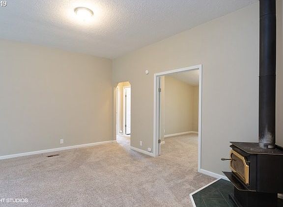 - RoomLivingRoomFeatures: Wall to Wall Carpet, Vaulted Ceiling(s), Wood Stove