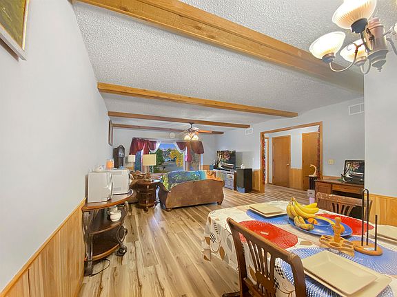 Welcome home to this charming 5-bed, 3-bath raised ranch in Wichita, KS! Conveniently located near McConnell Air Force Base, Towne East Mall, and all the shopping & dining in Southeast Wichita. This spacious gem is perfect for a growing household. Step inside and be greeted by a welcoming foyer leading to a spacious living room with wood-beamed ceilings and luxury vinyl flooring that flows seamlessly throughout the main level. The generously designed kitchen offers plenty of cabinets, countertop space, and comes fully applianced. The island kitchen features an eating bar and a breakfast nook with access to a covered wood deck, overlooking the large, fenced backyard with mature trees and a covered patio for outdoor entertaining. A spacious primary bedroom boasts double closets and an en suite bath with a private balcony. Two more ample-sized bedrooms and a second full bath complete the main level. But that's not all! The lower level is a stunner, featuring a dazzling family room with a wet bar and wood-burning fireplace, along with two additional huge bedrooms. With plenty of space for everyone, this home is a dream come true. Don't miss out on this incredible opportunity to make it your next home!