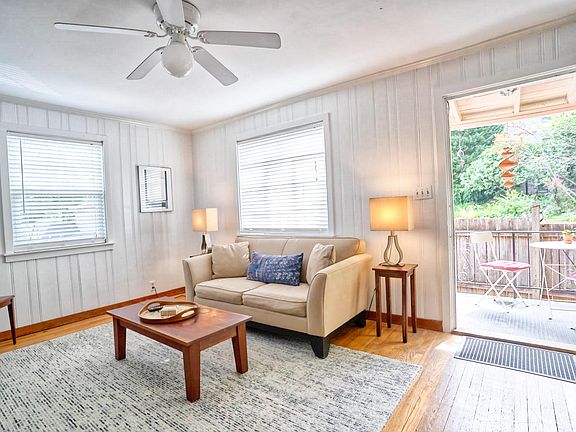 Make this cozy, spacious, and private spot your home away from home in Atlanta. Set well behind the main house and with woods in the back, you will have a quiet retreat in the middle of one of Atlanta's best intown neighborhoods. This garage apartment has two full bedrooms perfect for roommates or for visits from family, spouses, friends and children while you are in Atlanta. The queen beds are comfy and each has a pillow mattress and high end bed linens. Both bedrooms have a private wooded view. The eat in kitchen is large and fully equipped with dishwasher, microwave, toaster oven, full size W/D, dishes, glasses, pots and pans, flatware, cooking utensils, etc. The gray and white tiled bath was totally renovated in 2018 and has a large linen closet. The living room is spacious, has beautiful natural light and a brand new 50 inch smart TV. There are hardwood floors in the living room as well as throughout the home.House is decorated with a light contemporary flair and has original art and brightly colored framed posters as well as black and white Ansel Adams posters. Virginia-Highland, or "VaHi" as it is known by local residents, consists of four distinct commercial "villages" connected by short, walkable blocks lined with charming bungalow homes. The neighborhood's name derives from the intersection of Virginia and Highland Avenues and has the feel of a small town within the heart of the city. Locals and tourists alike mingle for brunch at charming sidewalk cafes, meals and drinks on comfortable patios and terraces, and cocktails at lively night spots. Discovering the unexpected is part of the attraction where you may find world- famous musical entertainment at a tiny nightclub, a viewing party at a recording studio, or a gathering of fascinating people at one of the area coffeehouses. Virginia-Highland is acclaimed for its diverse and unique shopping. Trend-setting apparel, local and global art and decor, whimsical and modern decorative accessories, natural linens, gourmet food, fine woodworking and gardening tools, unusual fresh flowers, unique contemporary, antique or traditional furniture, all are just a few of the extensive retail offerings. A place to relax and unwind, Virginia-Highland also caters to those seeking solace in the city. Full-service day spas, fashionable salons, yoga studios, gelato and dessert spots, and hidden gems entice visitors and residents alike to embrace a slower pace and settle into a VaHi state of mind. Owner pays for utilities and WIFI. All inclusive price.