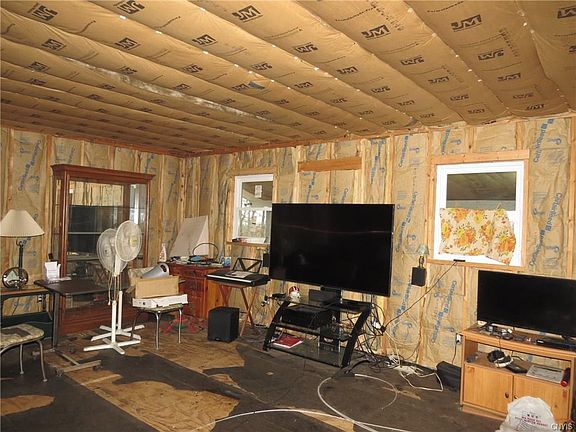 Beautiful and Private setting for this unfinished ranch style home. Wooded four acre lot provides privacy for this country home. Lower level is full walk-out and includes an oversized garage, family room, entry, full bath with laundry and utility room. Main floor is laid out with two bedrooms, large living room, and open kitchen/dining area. Interior is unfinished, Insulation is in, most of wiring is complete, needs drywall, cabinetry, floor coverings and fixtures. Create your dream home from this shell.