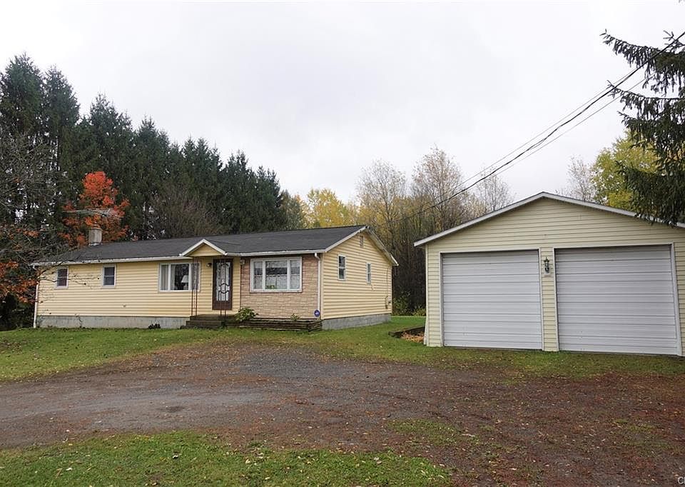 What a home! This ranch style home is situated on two large lots. There's an 24X48 four car garage with over-sized doors, a large storage garage, and a storage shed. Inside, you'll find a large cook's kitchen that's perfect for entertaining, overlooking the large deck. The solid-surface countertops complete the kitchen. Four bedrooms, an office, laundry room, and two full baths along with a generous living room complete the main home. In the basement, find a finished space with woodstove and bar complete with a stove and refrigerator, a large workshop area with bilco doors to enter and exit, and updated mechanicals including a high-efficiency boiler and water softener. Wired throughout for networking and an ADT alarm system is installed. So much to love!