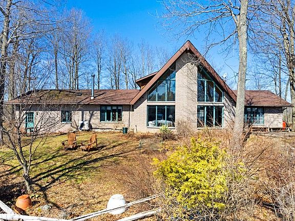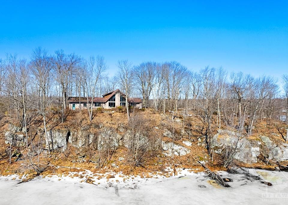 Secluded haven on bay in Sand Lake. At end of meandering driveway, spacious home surrounded by 7 acres of nature with 2,839' waterfront. No neighbours, just herons, ducks, deer and crickets. The 3bed, 2bath home has flexed floor plan to suit your family. Big closet in foyer. Livingroom soaring 21' ceiling, patio doors and wall of amazing windows. Diningroom also overlooks the bay. Vaulted oak kitchen opens to familyroom with woodstove. Main floor bedroom and 4-pc bath. Laundry room. One room roughed in for 3-pc bath. Upstairs, primary bedroom wall of closets plus ensuite with two sinks, shower and spa tub. Lower level familyroom and bedroom. Attached insulated garage has workbench and entry to main floor plus lower level. Outside wood-fired brick oven. Included is 0.7 acres on cliff across the bay. Hi-speed. Garbage pickup at end of 0.8 km driveway. Local contractor will do snow plowing. You are tucked away in nature on the lake, just 5 mins Elgin, 15mins Westport, 30mins Smiths Falls.