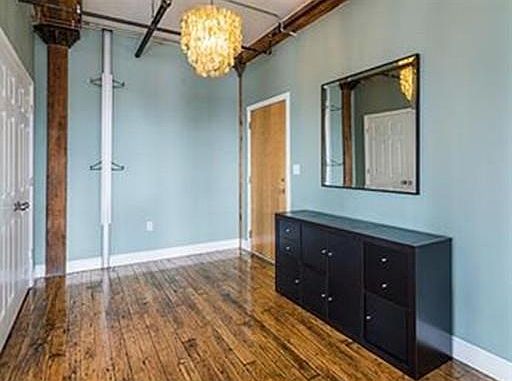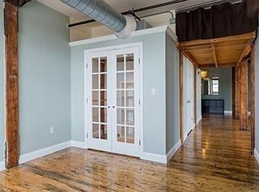 NICE PRICE !1375 SF this open loft boasts 10' high ceilings, custom track lighting thru-out, a modern, galley-style kitchen, stainless steel appliances and a custom built storage mezzanine. Main sleeping area features an adjoining walk-in wardrobe, second sleeping area also has wood floors nice sunlight and is 8X10 in size. . Original rock maple and oak flooring together with the rough hewn columns recall this lofts industrial past. Outdoor amenities include BBQ and garden area. Parking space #19 is for occupants exclusive use.