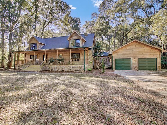 Nestled onto a quiet cul-de-sac in established Crawford Place, this log cabin home is surrounded by mature trees on over an acre lot. Less than 5 minutes to the sandy shores at Edisto Beach & a variety of restaurants, bars & shopping, the location is highly desirable. Rock your worries away on the quintessential southern porch or relax on the spacious screened porch overlooking the woods & wildlife. Even better, the property backs to protected land under a conservation easement. Inside discover a breathtaking focal fireplace and vaulted/beamed ceilings. The living & dining areas flow nicely into the kitchen, boasting plenty of counter seating. Enjoy the convenience of a main level owners' suite! Upstairs offers a loft and 2 additional bedrooms. 2 car garage is attached via roof covering.If you're seeking the beach lifestyle with a country backdrop, this log home is ready for its new owners!
