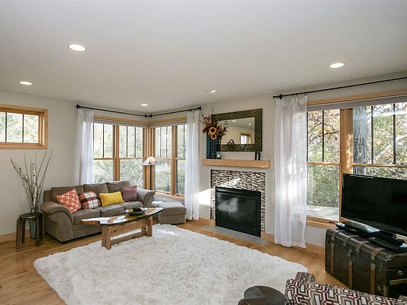 Exceptional Quality, Unique & Charming! This Architecturally-Designed 2 Story home nestled in the trees at the end of a cul-de-sac offers a everyday retreat in town. Quality craftsmanship includes cement board siding [professionally painted 2017], long/large Anderson windows, maple hardwood flooring, many custom built-ins, new maintenance-free Azek deck & professional landscaping w/ firepit [completed 2015]. Lots of natural light, 2 gas fireplaces, oversized garage, finished walkout basement & more!