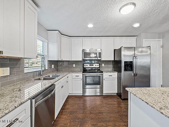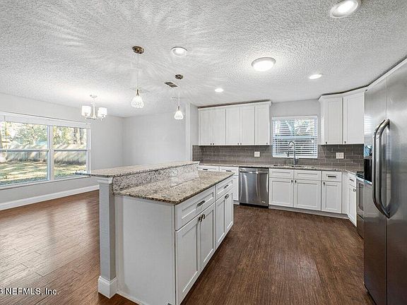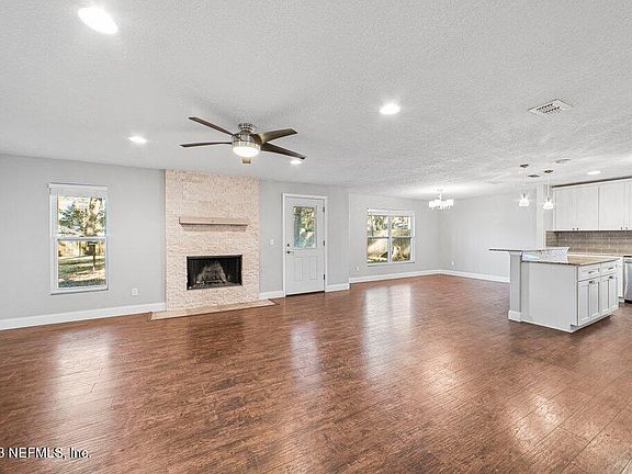 Septic & roof just passed inspections! Gorgeous turnkey home in the desirable Hibernia Forest neighborhood of Fleming Island! NO HOA or CDD fees & plenty of space on this 0.39 acre lot. This home features an open floor plan with a beautiful fireplace, renovated kitchen AND bathrooms. Laminate wood flooring throughout the home & primary bedroom and brand NEW carpet in the additional bedrooms. Kitchen has white shaker cabinets, stainless steel appliances, tile backsplash, granite countertops & an island with pendant lighting. Additional recessed lighting has been added in the main living area & kitchen. 2 car garage freshly painted inside. New HVAC system in 2021, new electrical panel & hot water heater in 2016. Huge backyard has a patio and gorgeous trees providing plenty of shade. Community only private river access is located at the end of the street. Conveniently located only 5 minutes from all of the Fleming Island shopping, restaurants, medical center & 15-20 minutes from NAS JAX!