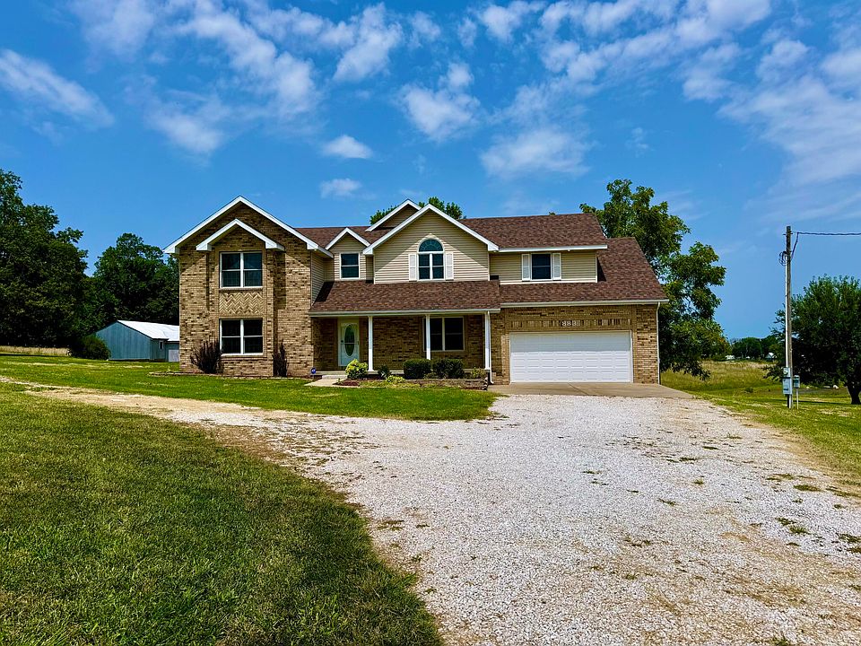 PRICED BELOW APPRAISED VALUE!!This home sits on 5 acres and has such amazing curb appeal. Located just 4.5 miles west of Highway 13 on Highway T, you have convenient access to Springfield, Kansas City and Stockton Lake. The circle drive makes it easy to enter and exit the property and the large 2 car garage allows for safe parking for your vehicles. The solar panels are included in the sale, and there average Southwest Electric bill is only $102/month!Walking into this home, you're welcomed by a 2 story foyer with a grand staircase. To your left is a large dining room, complete with a window seat for the recessed window, tile flooring and a large doorway to the formal living room. The living room has a propane fireplace, that is perfect cozying up this winter. The kitchen has a propane range, wall oven and counter space that will delight any home chef. The oak cabinets are the right shade and offer ample store. The laundry room is perfectly situated by the kitchen, and has a full bathroom attached, making it an ideal mudroom. A large den rounds out the main floor and is perfect for visiting with friends or working from home. Upstairs, you'll find a primary suite that has hardwood floors, a tray ceiling and another window seat, that features storage and the perfect nook for reading a book. The ensuite bathroom has a soaking tub with jets, dual vanities and a separate shower. The walk-in closet should be big enough for even the bougiest of Fashionistas. Down the hall is where the other 3 bedrooms are, as well as the third bathroom. Each bedroom is oversized and has a fantastic walk-in closet. Outside, there's a picturesque red barn, as well as an equipment shed, and a large storage shed/chicken coop. You'll also see a cute pond at the back of the property. A basketball court is also ready for some fun games!