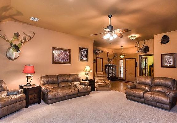 Beautiful well cared for home with awesome kitchen w/ island; huge dining area and fantastic living area. Master suite is large with shower, whirlpool tub and great walkin closet. The other two bedrooms are large with ceiling fans and on has a walkin closet. The study is large and could be a fourth bed. Outside is a large cover patio, a 32x32 brick shop with loads of storage, a large deck leads to a workout room/apartment/office above the detached garage that has a full bath,, cabinets and a heat pump for heat and air. The back large is large and there is a storage building and loaded with trees. Beautiful landscaping in the front and a Koi pond near the front door. This home is NICE and offers a lot of extras.