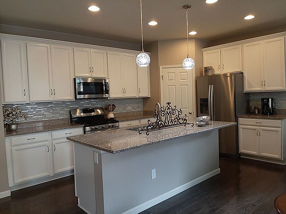2% to buyers agent! 2017 Single story ranch by Taylor Morrison. Lots of upgrades including; very private gazebo & hot tub. Open concept with bright white kitchen, including custom back splash, upgraded 40"cabinets with crown molding. Master bath has gorgeous twin sliding barn doors leading to the large 2 vanity bathroom and huge walk-in closet. Dark hardwood floors through out with carpet in bedrooms. The 4 foot stamped concrete driveway extensions lead to the 3 car tandem garage. The garage also has a fold away work HD work bench. The covered patio steps down to a stamped concrete extended patio connecting the gazebo and the 4 month old hot tub. Lots of main floor storage with large walk-in storage closet adjacent to the separate coat closet. Another walk in closet with shelves is off the mud room. Front and back yard are xeriscaped with beautiful perennials that bloom in different colors through out the season. Landscaping and trees are established. Meticulously maintained.
