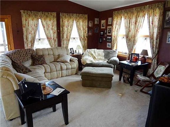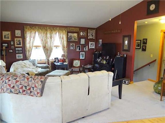 1995 Built Contemporary. Reverse Colonial style with bedrooms on the first floor and Kit, liv rm on the 2nd floor. Awesome oak kitchen w/center island and newer appliances! Liv/din rm is open w/cathedral ceilings! Door to covered deck w/great country views! 1st floor has 3 bdrms, beautiful large bath and laundry! Attached garage has upstairs storage! 30 x 60 barn has a heated workshop! Public Water. Approx 15 acres of woods on the top 1/2 of the land. Great firewood supply! Home has an outdoor woodburning furnace for hot water heat. Also can use propane. 25 ft+- deep pond stocked with Bass!