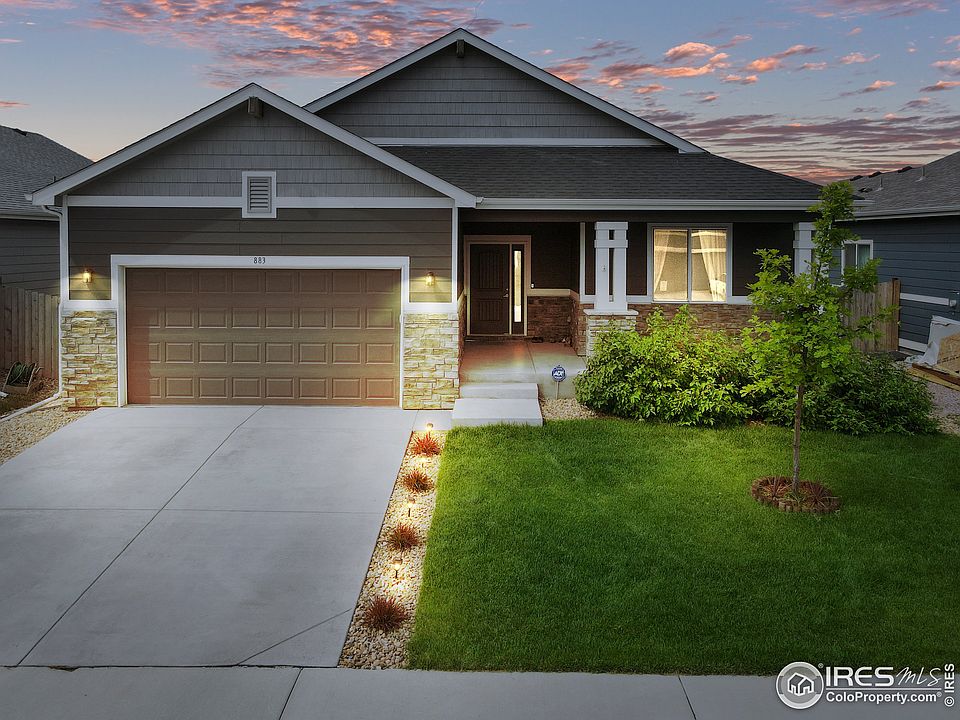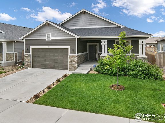 Your search is over! From the moment you arrive at this 3 bed, 2 bath ranch you will fall in love with the charming covered front porch, lush lawn, and gorgeous exterior finishes. The functional floor plan has a bright and spacious living area that opens to the dining area and kitchen. The extended countertops are perfect for entertaining, while the abundant cabinet space and walk-in pantry provide plenty of storage. The primary bedroom suite features a garden tub, walk-in shower, dual sinks, and a large walk-in closet. On the opposite end of the house you will find two guest bedrooms and a full bath. The unfinished basement is roughed in for another bathroom and has opportunity to expand the living space. Unwind next to the wood burning fire pit in the privacy fenced backyard. Enjoy a nice stroll or bike ride to the nearby parks, pool, rec center, and tennis courts. Milliken has a wonderful small town vibe, and is just a short commute to Loveland, Greeley, and Fort Collins.