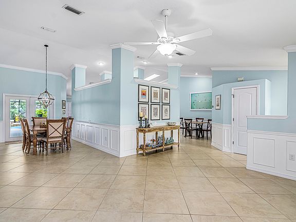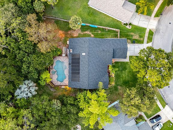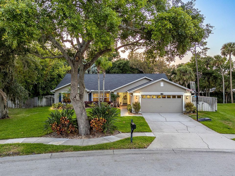 Explore this exquisite pool home nestled in a gated community on a cul-de-sac. This property spans 2,522 square feet & is situated on a serene & private 0.50-acre lot—ideal for storing large toys. The home boasts 24'' x 24'' tiles & plantation shutters throughout. The formal living & dining rooms are tailor-made for celebrations, while the kitchen features wood cabinets, granite countertops, a marble backsplash, under-cabinet lighting, and sleek black stainless steel appliances. The family room w/ a cozy fireplace offers a perfect setting for relaxing nights. Freshly painted exterior & a newly installed roof in 2023. Detailed millwork, crown molding, chair rails & panel molding enrich the aesthetic. The laundry room includes a sink & extensive storage. The large bedrooms provide ample space for comfort. Outside, the large lanai is perfect for barbecues and gatherings, next to a supersized pool and expansive yard for outdoor fun. Conveniently located near Northrop Grumman & L3Harris