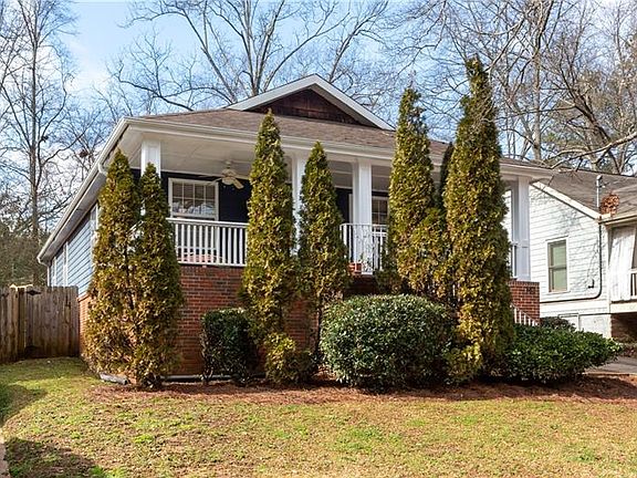 Welcome home to this Craftsman style bungalow with large rocking chair porch overlooking a lush yard. This home boasts hardwood floors and crown moulding throughout. Fireplace in large living room. Chef's kitchen with granite, stainless appliances, pantry and large breakfast bar or breakfast nook. Laundry room with storage space. Master bedroom features a large walk-in closet with custom shelving. En-suite spa-like master bath is large enough for two people to relax with river rock detailing and bench. Second and third bedrooms enjoy plenty of light and space. Second full bath with shower/tub combo. Large, flat, fenced backyard requires minimal maintenance. Close to East Atlanta Village restaurants and entertainment.