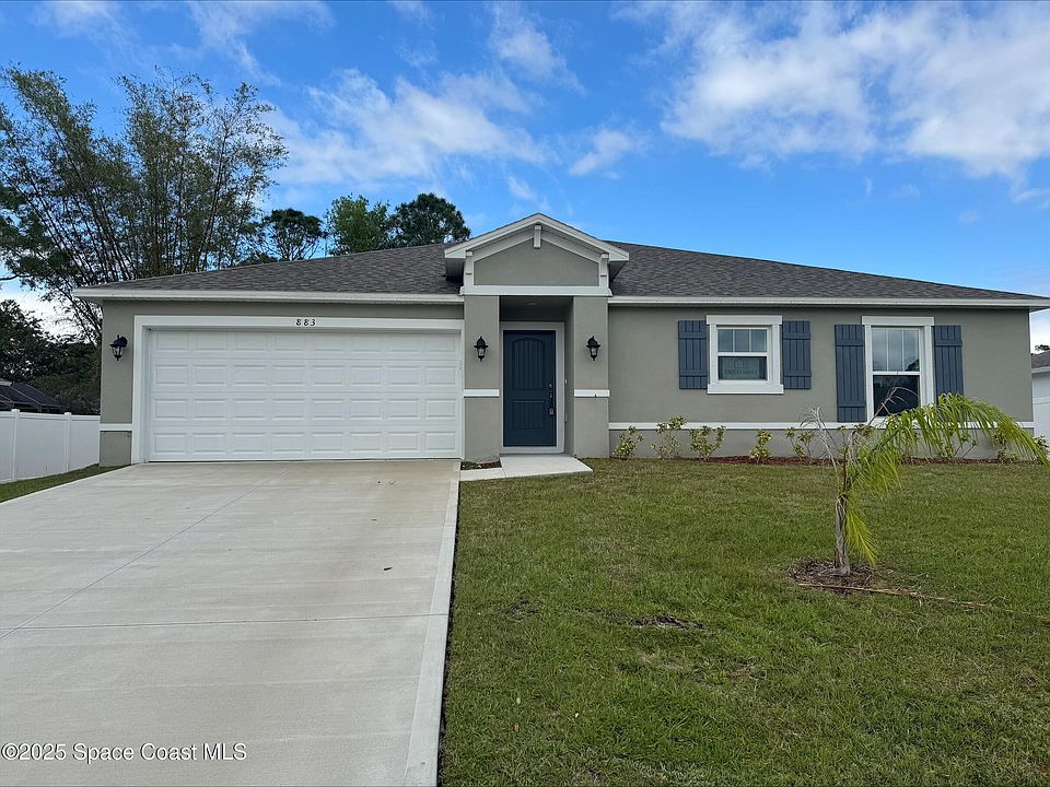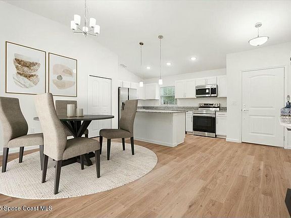 MOVE-IN READY! This stunning brand-new construction home seamlessly blends elegance, comfort, and modern convenience. Built with durable block and stucco construction, this open floor plan offers 4 bedrooms, 2 baths, and 1,654 sq. ft. of thoughtfully designed living space. Vaulted ceilings in the kitchen, dining, and living areas enhance the spacious feel, while Shaker-style cabinets and granite countertops add a touch of sophistication. The entire home is adorned with floating luxury vinyl plank flooring, ensuring both style and durability. Enjoy the Florida outdoors with a 10' x 10' covered porch. A premium stainless-steel appliance package is INCLUDED, featuring a 24.3 cubic foot side-by-side refrigerator with a built-in ice maker, a 30-inch smooth-top electric range, a 1.6 cubic foot over-the-range microwave, and a dishwasher - everything you need for a modern kitchen! For added peace of mind, your purchase includes a 2-10 Builder's Warranty. NOTE: Photos for example purposes only