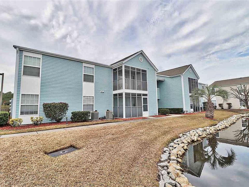 Location, location, location! This spacious 2 bedroom 2 bath condo is less than 2 miles to Surfside Beach. You will love the large open rooms! Relax on your screened in balcony off the living room, overlooking the lake. Large laundry room provides plenty of storage and can accommodate a full size washer and dryer. This wonderful complex boasts 2 salt water pools, a clubhouse, common area grills and beautiful walkway along the lake. Seller paid home warranty, carpets just professionally cleaned, and brand new windows with hurricane shutters. Square footage is approximate; buyer responsible for verification.
