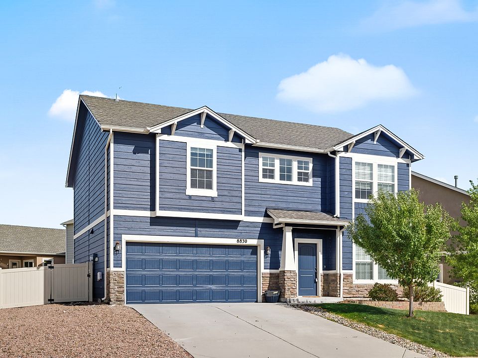 Discover this beautifully updated 4-bedroom, 3-bathroom single-family home, offering 2,354 square feet of modern living space in the heart of Colorado Springs. Built in 2016, this home sits on a spacious 6,534-square-foot lot with a large backyard, perfect for outdoor activities and relaxation. Step inside to find fresh paint, new flooring, and new baseboards throughout, creating a bright and inviting atmosphere. The kitchen boasts sleek stainless steel appliances, and for added convenience, a washer and dryer are included. This home is move-in ready and designed for comfort. Located just half a mile from Grand Peak Academy, with a local playground and dog park nearby, this property is ideal for families and pet owners. Nestled near the scenic Black Forest area, you'll enjoy a peaceful neighborhood with easy access to nature and community amenities. Don't miss the opportunity to rent this modern, well-maintained home in a prime Colorado Springs location! Utilities not included. $250 deposit per pet.
