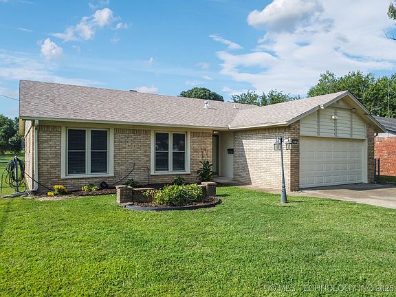 Welcome to your dream home! This charming 3-bedroom, 2 bathroom house is nestled on a spacious .7 Acre lot M/L, offering both privacy and room to breathe. With it's full brick exterior, this residence exudes timeless and durability. The recent upgrades are truly impressive: new exterior and interior paint, sleek luxury vinyl plank flooring, and modern light fixtures throughout, making it move-in ready and waiting for your personal touch. Step into the cozy living area and enjoy the inviting ambiance of a wood burning fireplace, perfect for those chilly evenings and creating a warm, convenience. Whether you're aspiring chef or a casual cook, the kitchen is a blank canvas for you to design your culinary haven. Conveniently located near the Broken Arrow Expressway and HWY 169, you'll enjoy easy commutes to work and quick access to all the other chores and activities of daily life. The large lot means you'll have plenty of space for outdoor activities, gardening, or even creating your own backyard oasis. This home blends classic charm with modern updates, offering you a fantastic opportunity to create the perfect living environment. Come and make it yours!