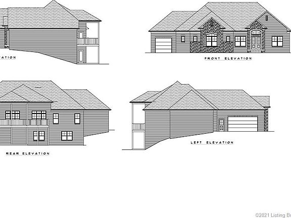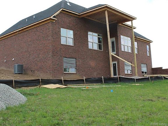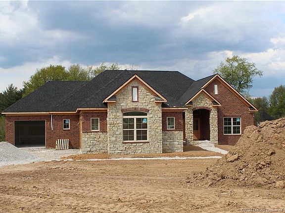 WHY CUSTOM BUILD when DISCOVERY BUILDERS has already Designed this AMBROSE III PLAN with CUSTOM HOME Features, including, 11' Ceilings in Foyer, Great Room, Kitchen & Dinette, all with Crown Molding. Engineered Hardwood Flooring on the Main Level & Fireplace with Bookcases in the Great Room. This Handsome Brick & Stone Ranch Style Home includes a 3-Car Tandem Garage, Large 12' x 18' Covered Deck with additional Open Decking & Extensive Lower Level Patio Space accessible from the Walkout Lower Level. This home includes approximately 3,500 SF of Professionally Designed & Decorated Space with DISCOVERY BUILDER QUALITY throughout. This Split Bedroom Ranch Plans sits in the cul-de-sac with a 1.35 Acre Lake View Site in Award Winning Floyd Central High School District. ALL Rooms are Spacious & Well Appointed. The Owner's Suite includes a Hip Vaulted Trey Ceiling with Crown Molding. The Owner's Luxury Bath includes a Large Walk-in Corner Tile Shower with (2) individual vanities & (2) Linen Closets. The Owner's Walk-in Closet is connected to the Laundry Room for Easy Access. This Plan also includes a POWDER BATH for Guests, a WALK-IN PANTRY & Owner's Entry with Bench and Cubbies. The Lower Level is Finished with 9' Foundation Walls & Lots of Natural Light. There's a 4th BR with Walk-in Closet, a 3rd Full Bath, Family Room/Media & Game Table area & a WET BAR with STANDING/SERVING COUNTER. This home also includes Upgraded Stainless Kitchen Appliances. Sq ft & rm sz approx.