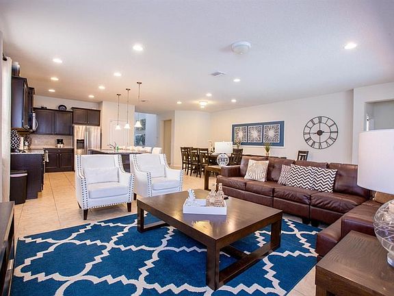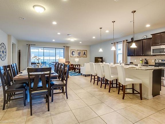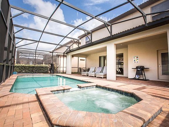 Welcome to this beautifully designed 4,041 sq ft home in the resort community of Windsor at Westside. This spacious 2 story property offers plenty of room for large families, vacationers, and guests looking for comfort and entertainment near the attractions. The open layout features a bright living area, a modern kitchen with granite counters and stainless steel appliances, and multiple gathering spaces that make hosting effortless. With 8 bedrooms and 6 full bathrooms, everyone has the privacy they need. The upstairs loft provides additional lounge space perfect for movies or game nights. Step outside to a screened pool with a spacious patio, ideal for enjoying the Florida sunshine. The home also includes a 2 car garage and sits on a generous lot within a community that offers a clubhouse, resort pool, lazy river, fitness center, sports courts, and a full calendar of activities for owners and guests. Located minutes from Disney parks, dining, and shopping, this property is an outstanding choice for personal use or as a high performing vacation rental. Move in ready and offered fully furnished.