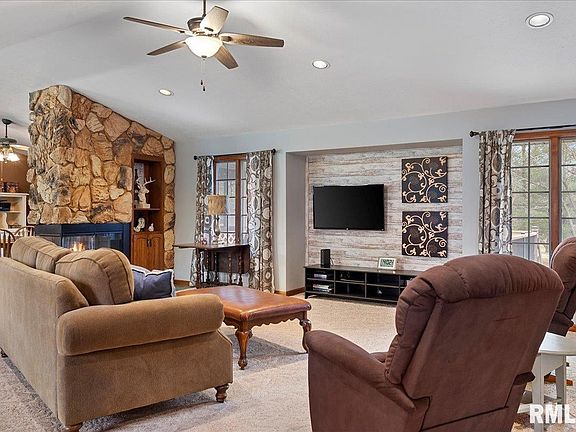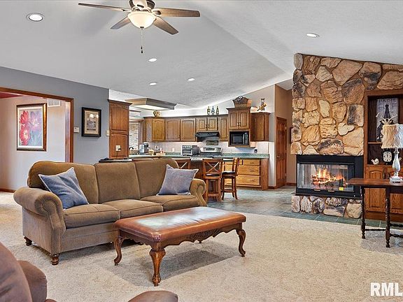 Nestled on a lush 6.5-acre expanse & complete with its own vibrant ecosystem this custom-built home welcomes with gorgeous views & the gentle sounds of a creek. Appreciate a scenic approach where mature trees frame the path to a beautiful home where meticulous maintenance is evident at every turn. The vaulted living room ushers you in from the foyer & presents a gorgeous vaulted living space & loads of natural light. A multi-sided stone fireplace creates a heartwarming focal point while uniting the living spaces with an open concept kitchen. Find modern appliances & cute backsplash coupled with ample counterspace & impeccable oak cabinetry. Enjoy an elegant formal dining room presenting a perfect backdrop for gatherings. The master suite becomes a retreat with its soaking tub standing as an invitation to unwind paired w/separate shower & dual vanity for a touch of luxury. Practicality is found in main floor laundry, a handy mop sink in the garage & additional storage in the outbuilding, ensuring that every need is met. Downstairs a walkout basement reveals more than just living space; it’s a realm of possibilities with a kitchenette, full bath, storage & direct access to the back yard. Here, the pool with deck awaits, a sun-soaked area for leisure and recreation amidst a backdrop of privacy & countryside views. This is an opportunity for a life surrounded by nature's beauty, ideal for hunting enthusiasts & outdoor recreation lovers & complete modern comforts.