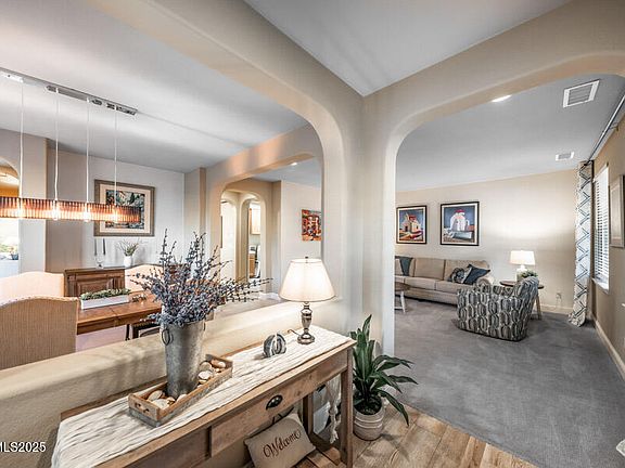Come experience breathtaking mountain and valley views from this beautifully upgraded home. Thoughtfully designed, this residence offers a warm and inviting floor plan, perfect for entertaining. Enjoy a gourmet kitchen, spacious living areas with abundant natural light, and a luxurious primary suite. Step outside to a serene outdoor space, ideal for soaking in the stunning surroundings. Located in one of Reno's premier master planned communities with top-tier amenities, golf, pools, trails and more., Since Purchase Sellers have done the following improvements: Brand new Lennox Furnace installed in 2022 with 3 zones throughout the home with programmable thermostats. 2019 KitchenAid 30 in. Electric Even-Heat True convenction Wall oven with Built-in Microwave was installed. New Frigidaire Professional gas stove installed. In 2023 New Bradford White, 50-gallon water heater was installed including an expansion tank, water flex lines and valves. Keyless entry was installed. Shutters on all external windows have been re-painted. New Carpet installed in primary bedroom and closet, stairway and all upstairs. Primary Bedroom Closet was designed and installed by California Closets. April of 2021 Patio Door installed in living room by Renewal by Anderson, to match door going to backyard. Also, Sliding door replaced in Primary Bedroom all permitted with City of Reno. New Paver patio installed on side yard, making it more temperature welcoming for outdoor dining and entertaining during hot summer nights. Hot tub by MasterSpa installed in backyard, by the new sliding glass door from Primary Bedroom. Newly installed, deticated 220-Volt electric line for MasterSpa hot tub. All outdoor electric outlets inspected and repaired as needed.