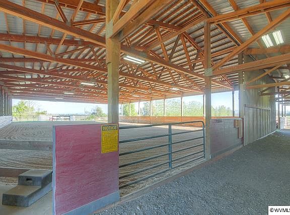 Turnkey natural boarding facility on nearly 60 acres, beautiful custom home w/high-end finishes throughout incl. granite, tile, hardwoods. Open floor plan, living room w/fireplace, open to kitchen/dining area, 20x24 family room, perfect for entertaining. All bedrooms on main level + two upstairs bonus rooms. ClearSpan 120x72 covered arena, 16 stalls & 5 paddocks, 36x72 3-bay shop w/12x36 lean-to, 32x32 hay storage (approx 30-40 tons)