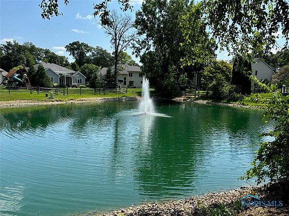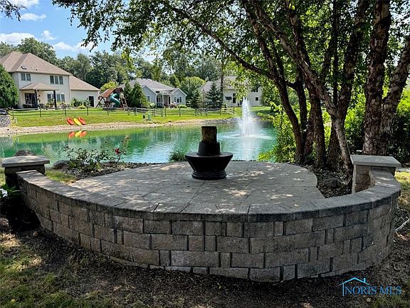 Superb Sylvania custom home is nestled into a culdesac lot, on the pond w/professional landscaping, stamped concrete upper/lower patios & gas fire pit. Granite, tile & stainless appliances in kitchen with instant hot water dispenser. 18x10 breakfast nook opens to year round sunroom with peaceful views of the pond. Wall of windows in 2 story great room. Finished basement includes billiard area, media area, exercise rm and half bath. Primary suite w/sitting room & spa-like bath featuring full tile shower w/dual head. New carpet/luxury vinyl plank on main and lower levels. Fresh paint throughout.