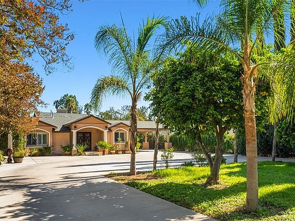 Welcome to beautiful gated estate in desirable Sherwood Forest. Single story home with 6 bedrooms and 5 bathrooms, just under 4,000 sqft of living space, featuring formal living room and family room with dual fireplace. Remodeled galley kitchen with stainless steel appliances, granite counter tops and opens up to a dining room. Additional features are fully remodeled bathrooms, hardwood flooring throughout, crown molding and baseboards, double pane windows with wooden shutters. Master suite has a private bathroom with walk-in-shower and jacuzzi bathtub, large walk in closet and French doors leading to a beautiful backyard. Entertainment's backyard offers beach entry pool with pebble tec, rock grotto with waterfall and slide built into, separate spa, and new pool equipments. Enjoy tennis, basketball or simply have fun on concrete sport court. The orchard area offers multiple exotic fruit trees, banana, papaya, citrus tree and more. There are two newer A/C units and leased Solar Panels. Large front yard offers security gates, circular driveway, professional landscape with Palm trees and orange trees, multiple car parking area and extra large carport. Sherwood forest city is hidden treasure in the valley, with large streets, lots of trees, pride of ownership for many, CSUN and Northridge mall are minutes away.