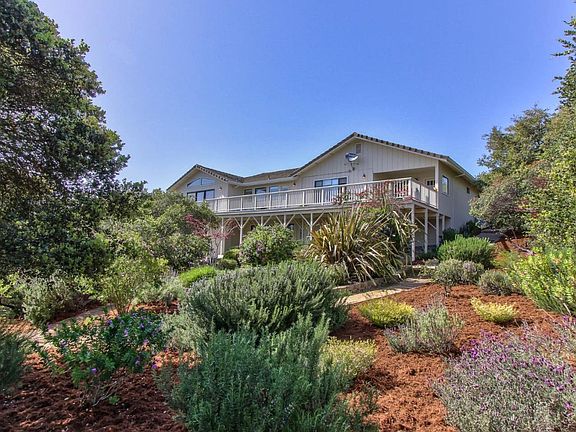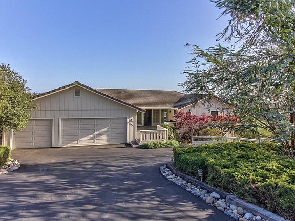 Sophisticated home with stunning panoramic views, expansive decks for entertaining & manicured lush gardens situated on a 1 acre lot in the desirable gated community of Manzanita Estates. This charming home boasts 2 levels of well planned, elegant living space. The upper floor, which is at street level, features dramatic vaulted ceilings in the living and dining rooms, a tastefully remodeled chef's kitchen & a spacious master retreat with a luxurious spa-like bathroom, each room highlighting the spectacular views & affording access to the upper deck. An additional bedroom/office & full bath are also conveniently located on the upper level along with the 3 car garage. The garden level includes a family room fitted with floor to ceiling bookcases & a wet bar plus sliding glass doors leading out to the lower deck & patios. 2 additional bedrooms, a full bath and a 400 sq.ft. wine room with built-in wine racks, lighted cabinets & separate wine-making room complete this extraordinary home.
