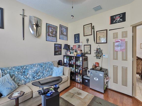 The lovely 3-bedroom, 2 bath, 2 car garage pool home with a den is just the home you are looking for. At "Heronview", the outside comes inside! Tons of curb appeal are provided by lush plantings, including the "baby grand" oak, palm oasis, magnolia, and mini date palm island. The pride of ownership is evident with the Engineered hard wood floors and upgrade granite countertops in the kitchen. The large dining room will easily fit a large dining room table for entertaining. The large kitchen also included a separate eat in area of the kitchen. The kitchen overlooks the large family room. The family room with a large sliding glass pocket door allows you to look over the beautiful screeded in pool. The beautiful inground pool at the back of the home is accompanied by a bamboo tiki bar and shady gazebo. It is located directly on a pond, with views of a natural area (gopher tortoise preserve) across the water and lots of bird- and turtle-watching opportunities. Lots of swimming and outdoor entertaining just outside our patio door complete the Florida lifestyle! The master bedroom overlooks the pool and pond. There are two walk-in closets, garden tub, shower and double sinks in the master bath. The garage has pull down stairs for extra storage. As they say in real estate, location-location-location. You can't ask a better spot to be. 3D tour available.
