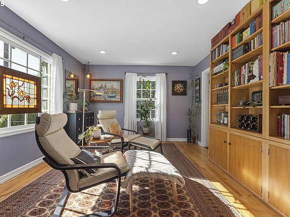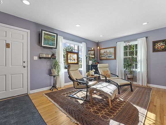 Thoughtfully updated cottage with surprising space and style. The sunny main level offers an inviting living room, hardwood floors, a cheerful kitchen, and two comfortable bedrooms. Downstairs, the basement adds flexible living with a family/media room, egress windows, bonus area for office and guests, plus ample storage. Step outside to a backyard made for Northwest living with a covered patio perfect for year-round gatherings, raised garden beds, lush landscaping, and a hot tub for unwinding under the stars. A detached garage provides extra storage or workshop potential, and the fully fenced yard keeps pets and play secure. Located on a quiet street just blocks to Rosa Parks Elementary plus quick access to University of Portland, St. Johns restaurants, New Seasons, parks, and bike trails. Easy commute routes and public transit nearby keep you connected while enjoying the charm of North Portland. This home pairs vintage character with modern comfort and invites you to spread out, entertain, and settle in. Every detail has been considered - this one is totally dialed. Energy Score:9!! [Home Energy Score = 9. HES Report at https://rpt.greenbuildingregistry.com/hes/OR10242319]