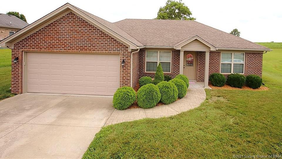 Welcome to 8831 Saddle Ridge Trail. This fantastic all brick ranch is situated on a quiet street in the Hillside Crossing subdivision in Charlestown. Lovely landscaping and a nice covered front entrance greet you as you walk up. Heading inside brings you into the great room. You will immediately notice how bright and airy this space is thanks to the vaulted ceiling that spans over the great room, dining area, and kitchen. The kitchen offers beautiful cabinetry, tons of counter space, stainless steel appliances, and breakfast bar. A sliding glass door off the dining area leads out to the patio. This home has a split bedroom floor plan to offer additional privacy to the primary suite. The primary suite offers a spacious bedroom with tray ceiling, walk-in closet, and full bath with double vanities and tile flooring. There two more large bedrooms and a 2nd full bath on the opposite side of the home. This home also offers a separate laundry room and 2 car garage. Out back is a fully fenced yard with plenty of space for kids and pets to play in. Schedule a showing today!