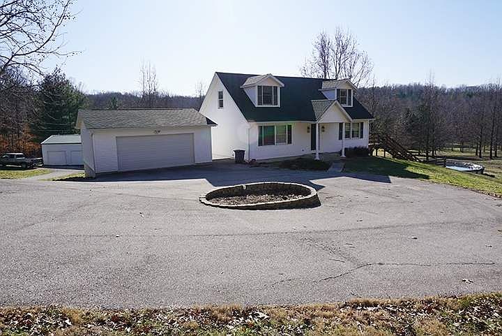 Great home in the country! This home sits on 3.64 acres with a two car detached garage and an additional three car detached garage. This is a three bedroom, three full bath, two story over a walkout basement. Home needs some cosmetic care, but overall in good condition. Owner added the two car detached garage closer to home, new roof, and had driveway and round about in front of home paved. Master suite is on the second floor with a huge master bath and lots of closet space. Kitchen has added cabinets for more storage and plenty of room in dining area. Walkout basement has area for workout space, a family room, office space and laundry room with full bath. Home is located less than 15 minutes from West side stores and restaurants.