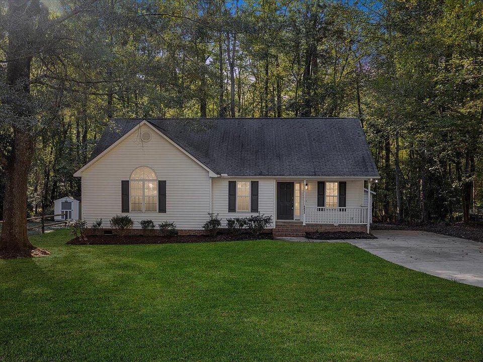 Welcome home to this beautifully updated one-level gem in The Woods of Ashbury! Every inch of this property has been refreshed with modern finishes and timeless charm. Step inside to discover 9-inch wide plank luxury vinyl flooring, vaulted ceilings that fill the home with natural light, and an open, airy layout perfect for effortless living. The kitchen boasts stunning Carrara marble countertops, stainless steel appliances, and all-new designer lighting. Both bathrooms feature custom marble vanities, and show-stopping tilework in the master, adding a touch of spa-like elegance. Fresh interior paint throughout ties the entire home together in crisp, modern tones. Outside, enjoy a new fully fenced backyard, detached one-car garage, and peaceful setting just minutes from everyday conveniences, shopping, and major highways. This move-in-ready home offers low-maintenance living in one of South Raleigh's most desirable locations — schedule your showing today before it's gone!
