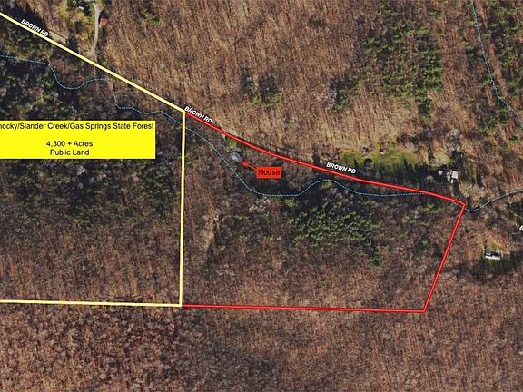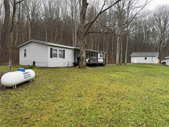 This house has 3 bedrooms, 2 full bathrooms, 1,456 sq. ft. Enter this home into a laundry room with a large mudroom. Custom kitchen has extended countertops and plenty of cupboard space. Open concept dining room-living room has plenty of space for kids and family. Off of the living room is the master bedroom with a remolded master bathroom. On the other side of the living room are two spacious bedrooms with the other full bathroom. All new flooring throughout. Heat source is a furnace & a pellet stove. Just west of the home is the 2 car detached garage which has electric, wood stove & a concrete floor. Built off of the garage is an enclosed area for pets or can be used as a kids play area. Behind the home is a creek that runs year-round.  Great place for kids to play in the summer months and pets to enjoy as well.  In front of the house is a large front yard which is level and gives you plenty of space to enjoy during the summer months. House sits on 17.9 acres. Acreage is mostly wooded land with a mixture of hardwoods and some pine trees south of the house. The west side borders New York State Public Land which includes over 4,000 acres to hunt, hike and explore the outdoors.