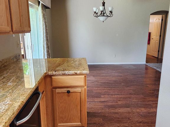 The moment you drive up, you can't help but notice the brand new driveway! The large 2 car garage leads directly into the kitchen through the laundry area. Master suite on east side of home, allows for privacy plus plenty of space in the closet within the master bath. The kitchen has upgraded. hardly used large gas stove w/ microwave above. A large, handy pantry, granite counter tops and plenty of cabinets. Open dining/living plan. Large 2nd & 3rd bedrooms. Backyard is spacious & has mature grape producing vines. Plenty of room for gardening. Sturdy storage sheds; the largest has tall ceilings w/ electric & would be a useful workshop. East side of the yard has plenty of room for RV or toy storage on gravel behind RV gate. The back patio is covered & extra concrete for a future spa.