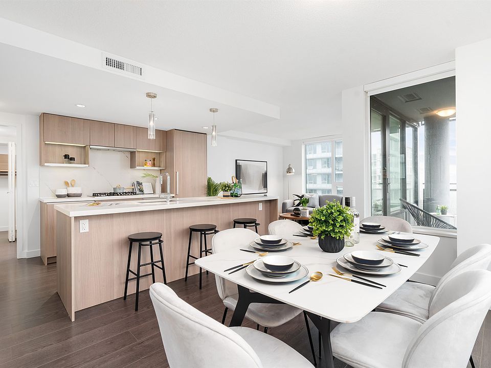 Welcome to Concord Gardens Park Estate - This beautifully staged and bright SOUTH-EAST corner home includes 2 bedrooms, 2 bathrooms PLUS large den, all closets have built-in organizers. The large open-concept kitchen, living & dining area features quartz countertop, porcelain tile & backsplash and high end appliances with views! Diamond club comes with 5-star resort-like amenities such as indoor pool, sauna & steam, expansive gym, games room, theatre, & yoga. Walking distance to future Capstan Way Canada Line Stn, transit & shopping. A/C + Heating. Home includes ONE Storage locker + ONE Parking Stall.