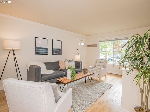Light, bright & stylish corner unit w/ newer hardwoods & freshly painted cabinets. Open living area w/ eat-in kitchen. Washer/dryer in unit. Fully fenced, landscaped backyard & patio perfect for entertaining. Tons of storage including basement unit & bike storage. Two deeded parking spaces. Walk score of 91! Steps to Cathedral Park, St. Johns bridge, shops, restaurants & cafes of downtown St. Johns. Home warranty included!