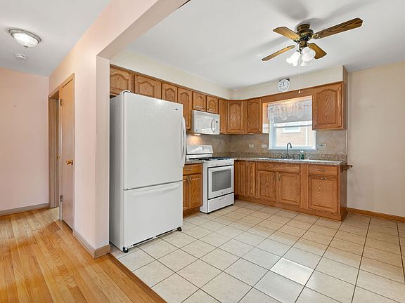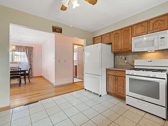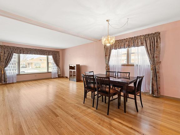 Lovely all brick ranch sparkles inside and out! 2 bedroom 2 bath and attached 2 car garage. Eat in kitchen with solid wood cabinets, built ins, ceiling fan and room for table. Entrance to patio and garage is found in kitchen. (3rd bedroom was removed in early 2000's to make a dining room.) Updates include, windows, kitchen appliances, storm door, Central air and Furnace were replaced in 2017. Whole home was tuckpointed in 2015, Roof was done in 2008. Newer garage door too. Home is flooded with natural light; patio (18X12) is perfect for grilling and large backyard is perfect for family and friends. The full basement is partially finished and is divided into three areas. The recreation room is 15X13, laundry room is 22x11 and workshop is 14X14. Easy to show and it does not disappoint!!