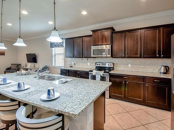GATED RESORT COMMUNITY- Baymont home design built by Pulte. This 2 story 8 bedroom/6 bathroom home features a screen enclosed pool with covered Lanai. Once you enter this beautiful home you will know you're on vacation. Owners take pride in keeping home well maintained. New carpet installed -upstairs loft and fresh paint. Enjoy the FLORIDA Lifestyle !Amenities include: 8000 square foot resort style clubhouse, resort style heated pool and spa, wireless internet on the pool deck, lazy river, state of the art fitness center, poolside cabana's, on site store, playground, volleyball, tennis, basketball, game room, restaurant, bar, relaxing lounge area with indoor/outdoor fireplace, TVs and much more. All homes include: fully maintained landscaping, internet, and daily valet garbage disposal. Home is located minutes from Walt Disney World, Airport and all major attractions. Solid bookings are in place. Existing reservations will convey with the sale. Call or text to Schedule a SHOWING TODAY!