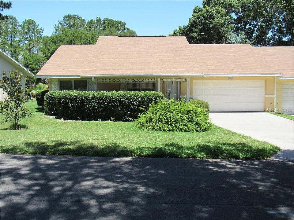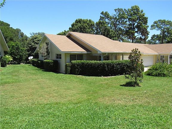 Come visit this Superb Montgomery Model that includes 2 Bedrooms, 2 Bathrooms, 2 Car Garage and New Roof in 2014. Be impressed by the manicured lawn, friendly front porch and beautiful atmosphere. Walk into a cozy living room and be amazed at the spacious kitchen and dining room area. Appreciate the tile and laminate floors plus admire a large wall unit to store your special beverages and glassware. Then get excited with an enclosed lanai that has been updated with windows, tile and central a/c and heat. Enjoy the master bedroom that has a big walk in closet and built-in ironing board. Then be amazed at the updated bathrooms that were beautifully done. New A/C was put in 2007 and has been maintained and serviced. Washer and Dryer plus laundry tub is in the garage. No need to look at any other homes. This villa will surely make you Happy!
