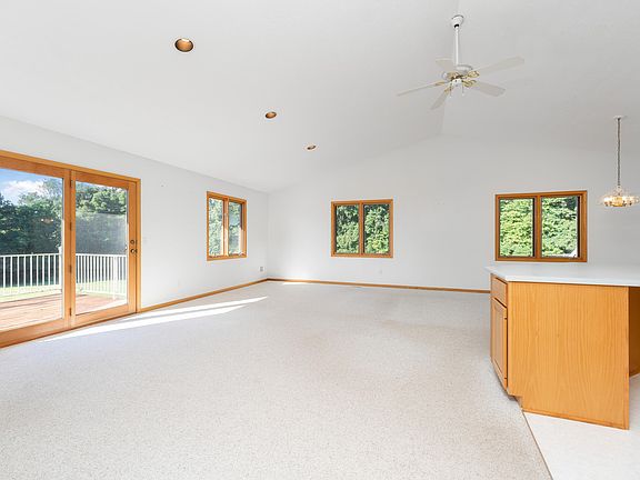 Sitting back towards the middle of the gorgeous 10 acres, this ranch walkout provides a lovely and peaceful country setting. Minutes to Texas Corners and Mattawans restaurants, grocery stores and Mattawan schools. The main level LR and Kitchen are vaulted and create a wide open bright entertaining and family space with lots of windows and sliders to the deck. There are 2 very large bedrooms and a full bath on this level. The walkout level walls have been finished in the and just needs flooring and your choice of ceiling finish in the Family room, Bedroom with full window and full bath. Lots of storage. There is a 2 car attached garage plus a 24x32 pole barn with extra height in the walls and doors for your extra large toys. There is a 2nd pole barn that is 32 x 48, both with cement floors and electric. Trails throughout the woods, lots of open space to play or house animals.