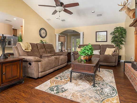 This 2002, 3/2 home w/ 2,212 sqft is truly move in ready! The following items have been replaced or installed/added within the last 1.5years - HVAC unit, replaced the sand filter system in swimming pool, installed a 22kw Generac generator, 250 gallons tank for the generator, whole house water softener treatment system, granite counter tops in kitchen and both bathrooms, new carpeting in all bedrooms, wood flooring , extra tool room in garage and the storage building located in back yard 12’x35 , Per the owner, the home is out of the HOA thus no dues. There is a huge bonus area above the garage that is being used as storage but might could be converted to living space. French drainage system in pool patio area And rain bird 10 zones under ground irrigation system..