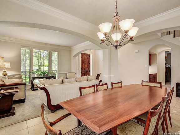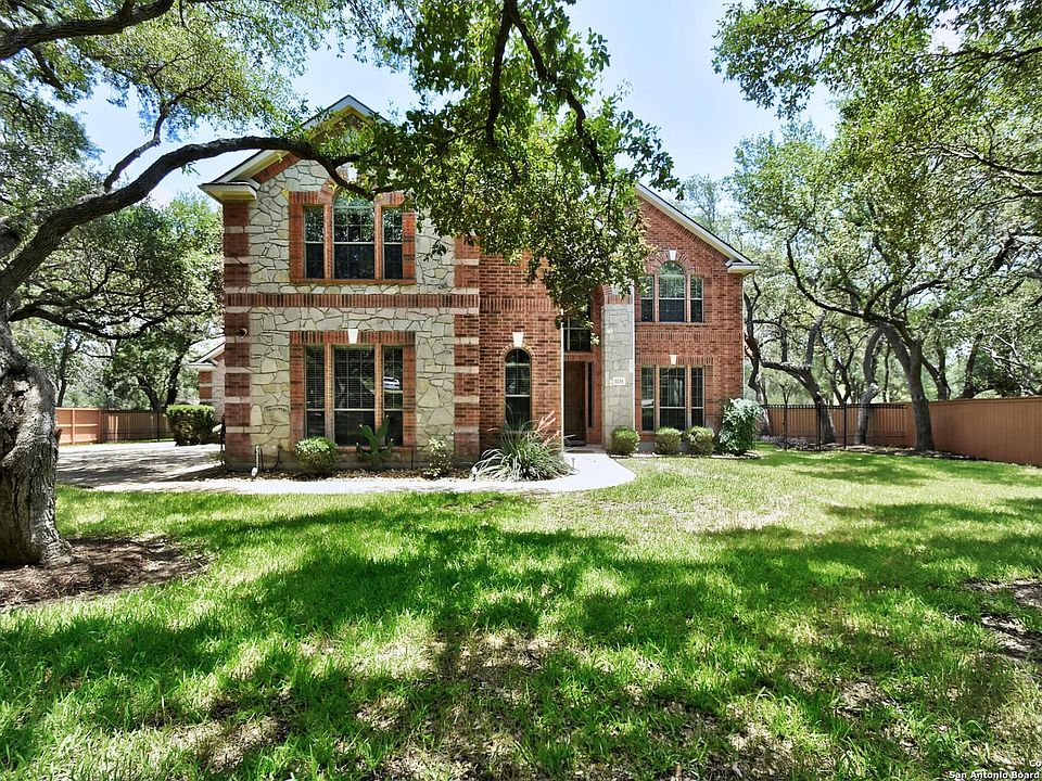 This home is an Executive Series Design with aspects that truly make it stand out. It has the Master Bedroom and all main living areas downstairs, while the upstairs provide bedrooms and entertainment areas for family and guests. It combines the convenience of a single-story home for the owners with the efficiency of a 2-story. This is a beautiful well-maintained brick and stone home nestled among mature oak trees in the Forest of Garden Ridge subdivision. It sits on a premium cul-de-sac lot. Its orientation is an ideal southeast exposure for gorgeous morning sun and cool afternoon shade. You'll really like how the backyard provides excellent privacy with a pleasant view of a 4-acre tree lined deer grazing meadow. Overall, the location provides a perfect balance of serene country living with easy access to city amenities. This home has had extensive updates in the past few years: new roof, A/C, water heaters, all kitchen appliances (including a 36" induction cooktop), 20,000W standby generator, and Caldera Seychelles Spa. Downstairs are the master bedroom suite, formal living and dining rooms, a butler's pantry, executive office, powder room, spacious kitchen, and family room with fireplace. Upstairs are 3 bedrooms, 2 baths, game room, and media room (all large). The game room with wet bar conveys an $8K Peter Vitale pool table, lighting, and bench. The back porch steps on to a large pavestone patio and an impressive pavilion shelter. The entire back yard is enclosed with a 6' cedar fence that includes a grand swing and slide playset, and a 12'X20' well-built shed and workshop with electricity. An added convenience in the backyard is a large 12' sliding fenced gate that leads out to a private access road.