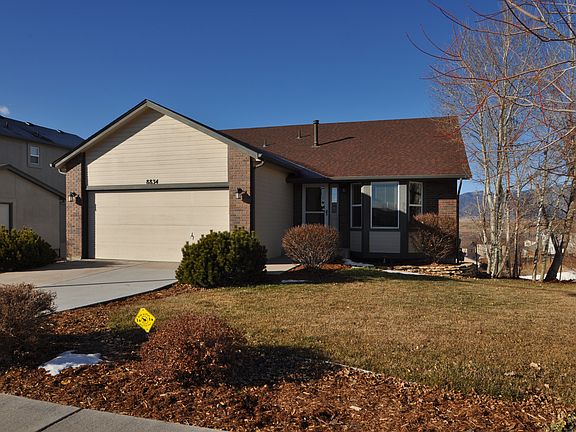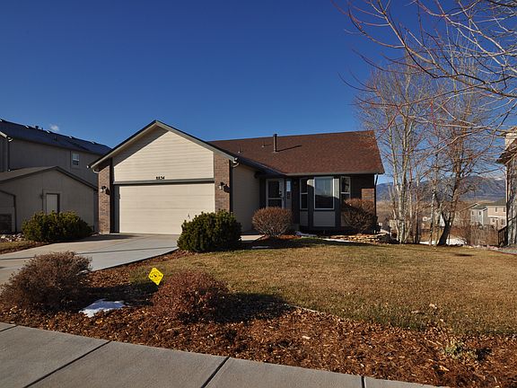 This beautiful one owner Ranch style home, is perfectly situate on its walk out home site and captures mountain views from the entire back side of the home. Upon entering this home you are greeted with tile flooring that leads to new carpeting. The kitchen boasts granite tile counters, tile flooring, a large pantry and a counter bar that will be perfect when entertaining. The large and open family room has soaring ceilings, a gas burning fireplace and walk s out to the rear deck. Also located on the main level are the master suite where you can wake up to mountain views every morning. Relax in your oval soaking tub or separate walk in shower, Double sinks at the vanity and tile counters. The second bedroom and generous sized laundry room complete the main level. Make your way to the fully finished walk out basement where you will find the rec room also with new carpet, a gas burning fireplace and plenty of lighting. Three additional bedroom and the homes third bath are also located in the basement. A large storage closet for all your extras. The two car garage has a side service door which makes getting your toys out of the garage a breeze. The rear is Xeri-scaped saving you time doing those chores. Sweeping views of Cheyenne Mountain! You can even see the Sangre De Cristo range! Central air, fully insulated garage and attic allowing an R-49 rating and a newer roof too! Don't miss this one! Start packing because your new home is ready for you to move right in!