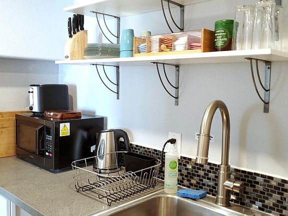 Sparkling new remodel! A light-filled, private downstairs studio apartment in a classic bungalow home. Perfect for one person. Stylish modern bedroom, bathroom, and kitchenette. Note: It is a kitchenette, NOT a kitchen. There is a mini fridge, microwave, tea kettle, hot plate, and coffee maker. Separate back door entrance; a family of very nice renters live on the main floor. The only thing you'll share is the laundry room and yard! Quiet residential neighborhood close to public transport, the Grotto, Rocky Butte, and restaurants/shops on Sandy Blvd. Option to rent it fully furnished because it used to be an Airbnb rental. 1 year lease, but open to a 6 month lease. Option to rent it fully furnished. Kitchenette, not a kitchen.